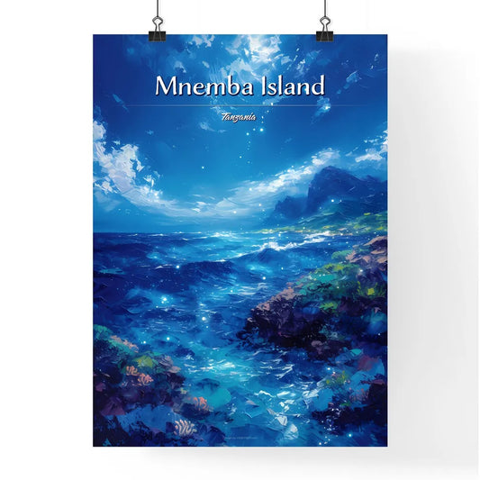 Mnemba Island, Tanzania - Art print of a blue ocean with rocks and water