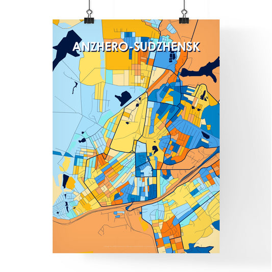 Anzhero-Sudzhensk Russia Vibrant Colorful Art Map Poster