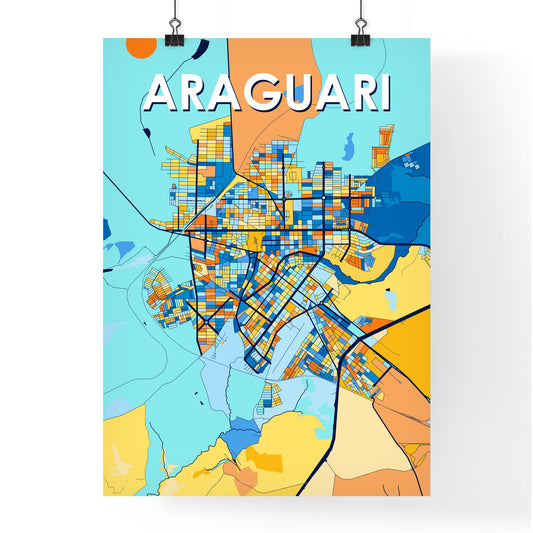 Araguari Brazil Vibrant Colorful Art Map Poster