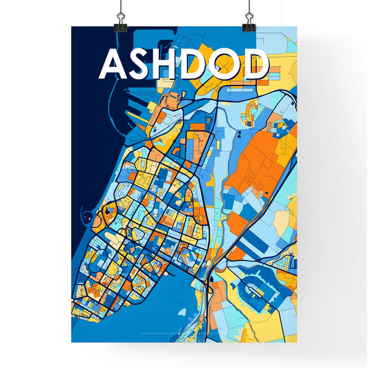 Ashdod Israel Vibrant Colorful Art Map Poster