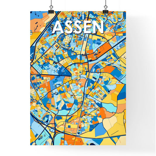 Assen Netherlands Vibrant Colorful Art Map Poster
