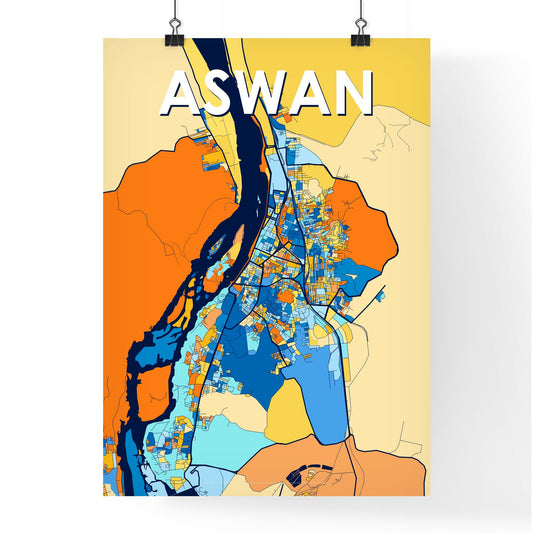 Aswan Egypt Vibrant Colorful Art Map Poster