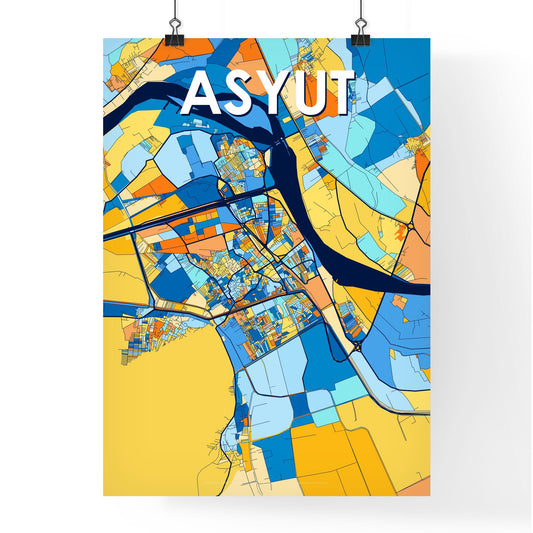 Asyut Egypt Vibrant Colorful Art Map Poster