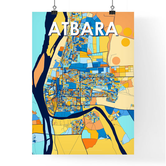 Atbara Sudan Vibrant Colorful Art Map Poster