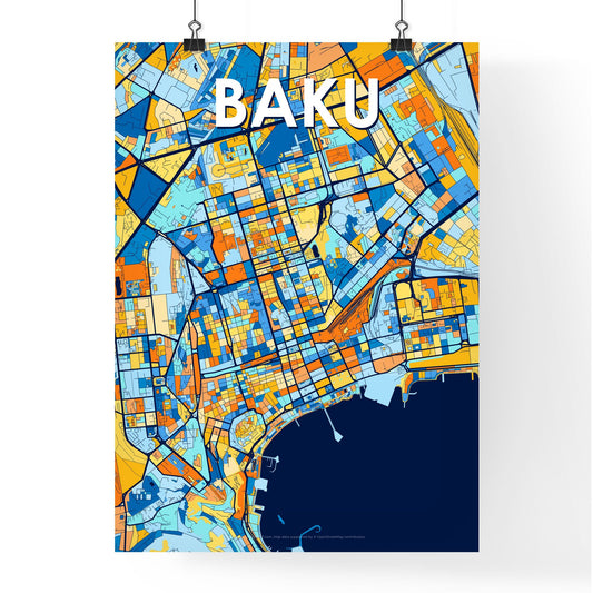 Baku Azerbaijan Vibrant Colorful Art Map Poster