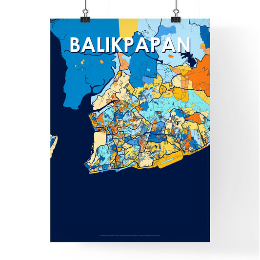 Balikpapan Indonesia Vibrant Colorful Art Map Poster