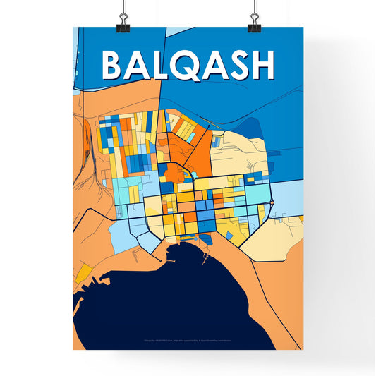 Balqash Kazakhstan Vibrant Colorful Art Map Poster