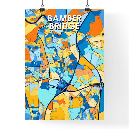 Bamber Bridge England Vibrant Colorful Art Map Poster