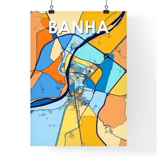 Banha Egypt Vibrant Colorful Art Map Poster