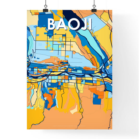 Baoji China Vibrant Colorful Art Map Poster