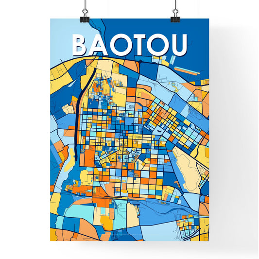 Baotou China Vibrant Colorful Art Map Poster