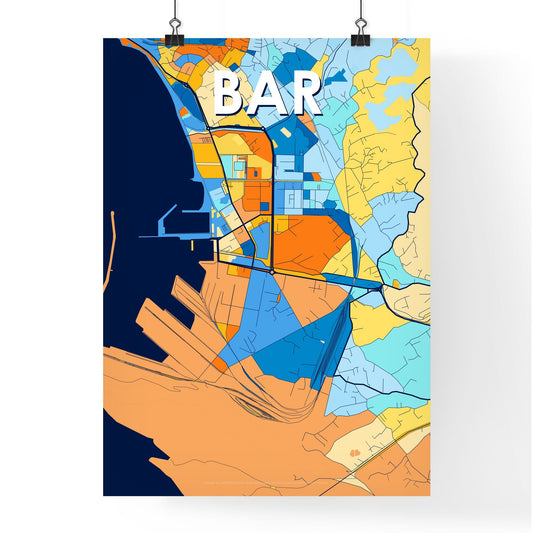 Bar Montenegro Vibrant Colorful Art Map Poster