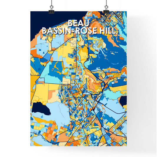 Beau Bassin-Rose Hill Mauritius Vibrant Colorful Art Map Poster