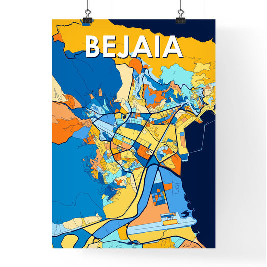 Bejaia Algeria Vibrant Colorful Art Map Poster