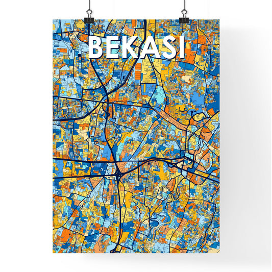 Bekasi Indonesia Vibrant Colorful Art Map Poster