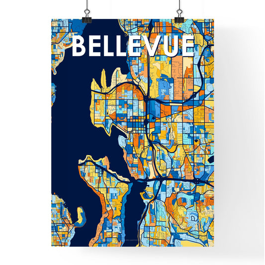 Bellevue Washington Vibrant Colorful Art Map Poster