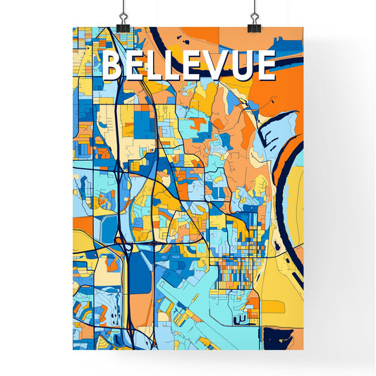 Bellevue Nebraska Vibrant Colorful Art Map Poster