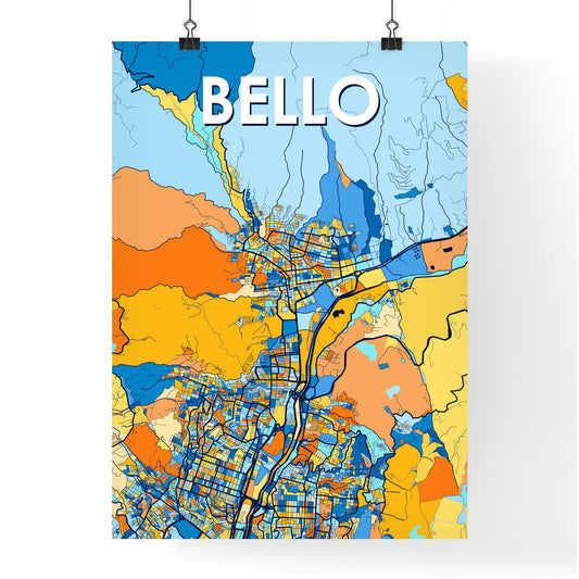 Bello Colombia Vibrant Colorful Art Map Poster