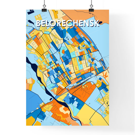 Belorechensk Russia Vibrant Colorful Art Map Poster