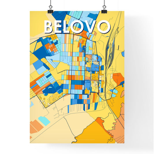 Belovo Russia Vibrant Colorful Art Map Poster