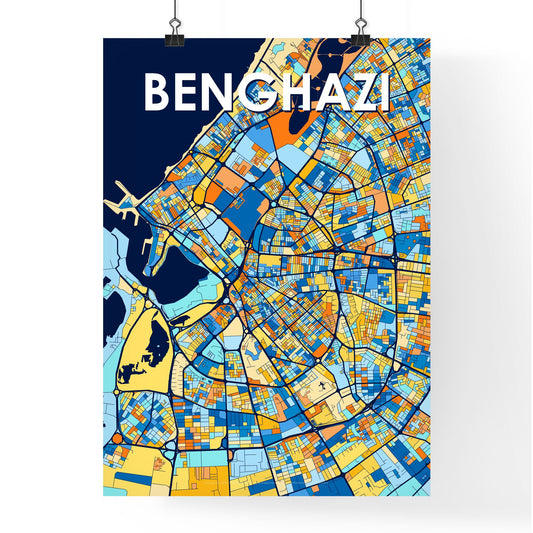 Benghazi Libya Vibrant Colorful Art Map Poster