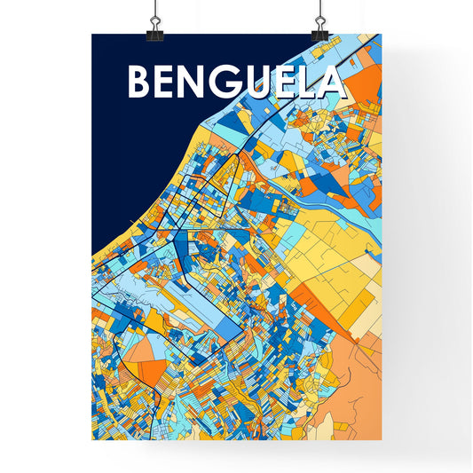 Benguela Angola Vibrant Colorful Art Map Poster
