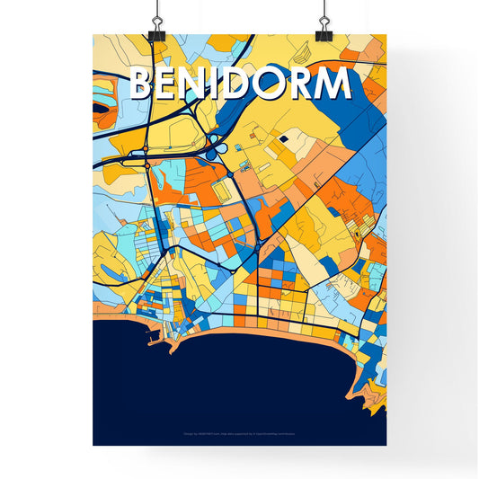 Benidorm Spain Vibrant Colorful Art Map Poster
