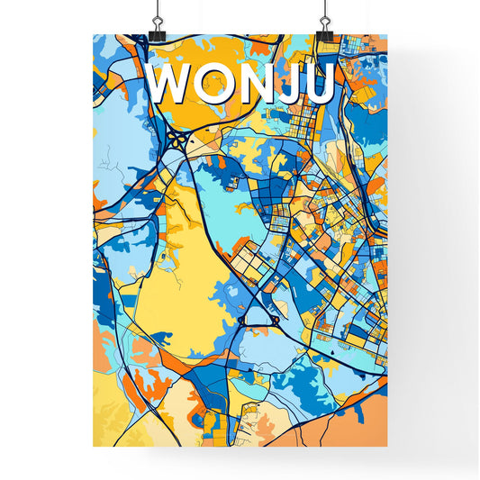 Wonju South Korea Vibrant Colorful Art Map Poster