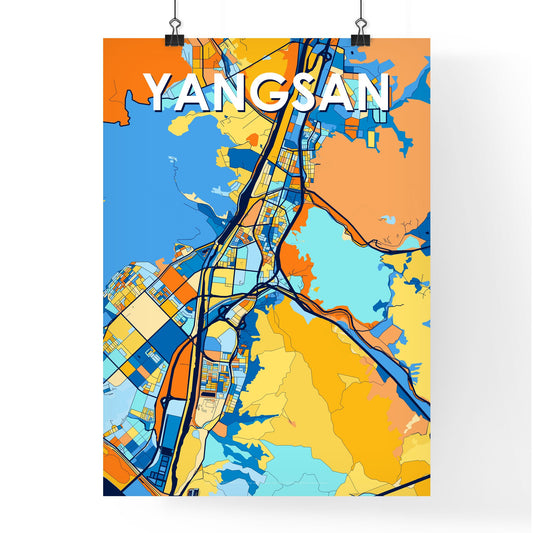 Yangsan South Korea Vibrant Colorful Art Map Poster