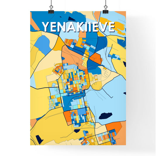 Yenakiieve Ukraine Vibrant Colorful Art Map Poster