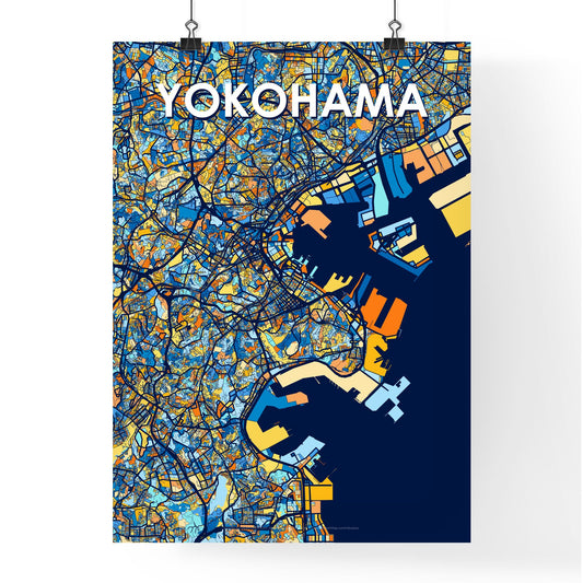 Yokohama Japan Vibrant Colorful Art Map Poster