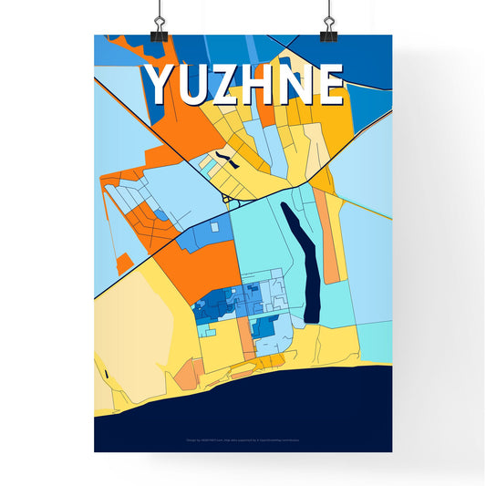 Yuzhne Ukraine Vibrant Colorful Art Map Poster