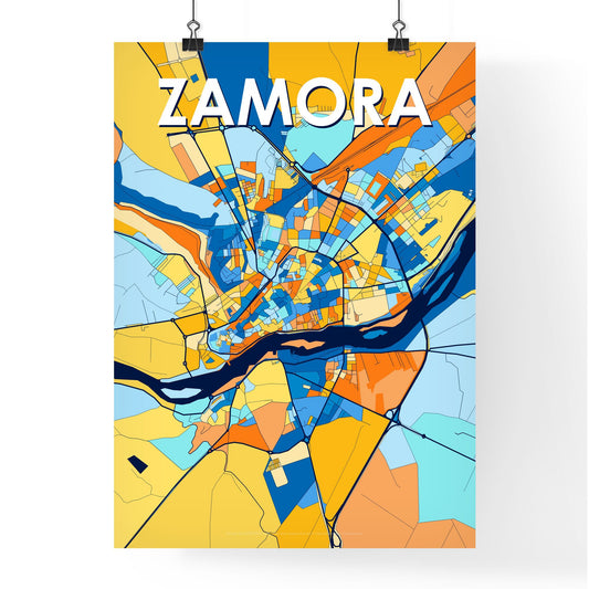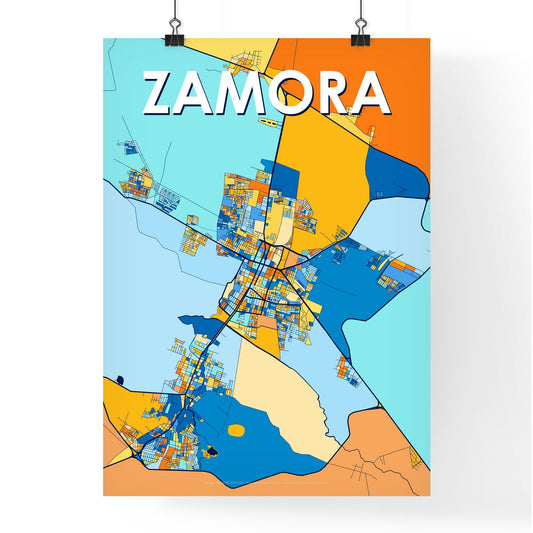 Zamora Mexico Vibrant Colorful Art Map Poster