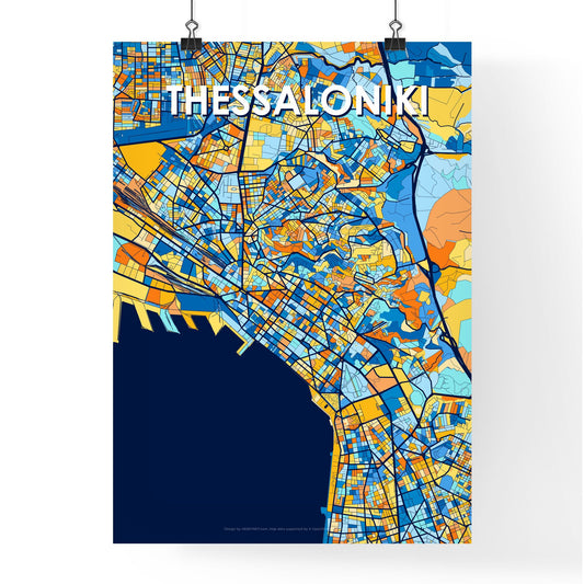 Thessaloniki Greece Vibrant Colorful Art Map Poster
