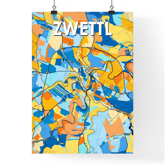 Zwettl Austria Vibrant Colorful Art Map Poster