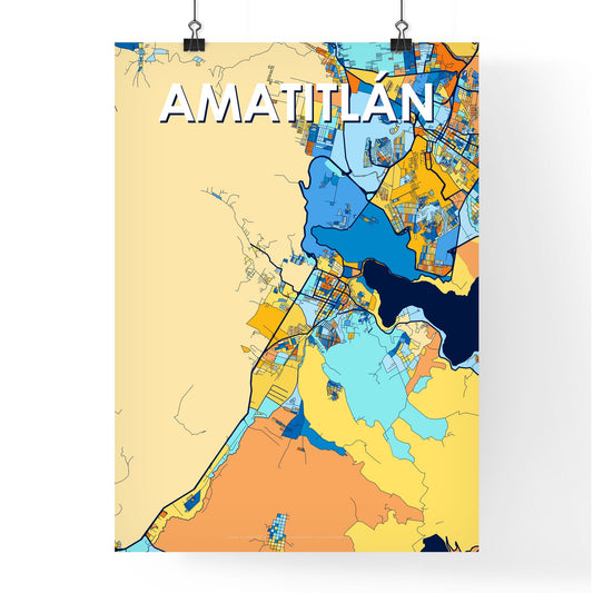 Amatitlán Guatemala Vibrant Colorful Art Map Poster