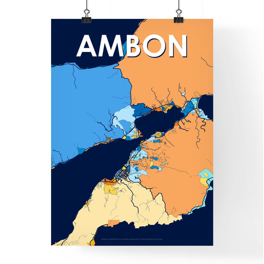 Ambon Indonesia Vibrant Colorful Art Map Poster