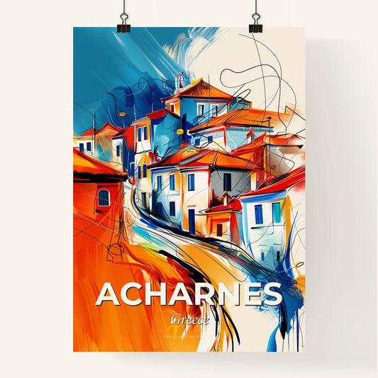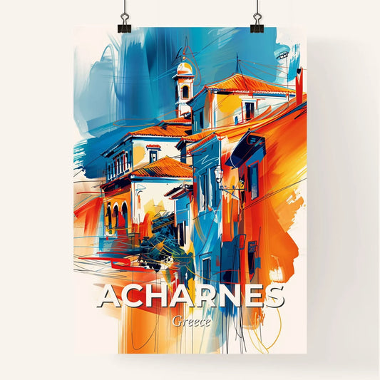 Vibrant Acharnes, Greece - A Painting Of A Town