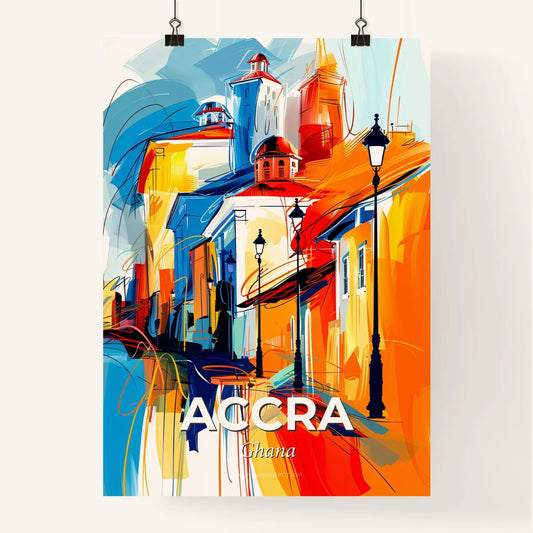 Vibrant Accra, Ghana - A Painting Of A Street With Buildings And Street Lights