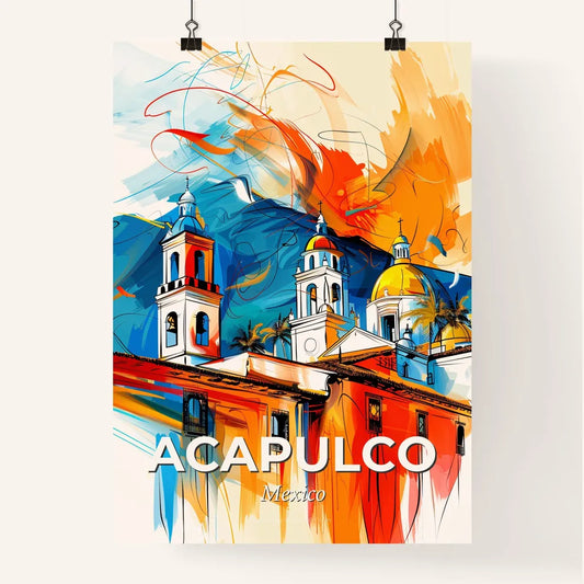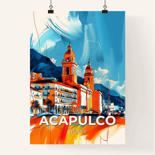 Vibrant Acapulco, Mexico - A Painting Of A Skyline With A Colorful Building