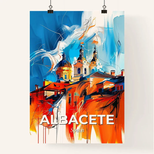 Vibrant Albacete, Spain - A Painting Of A Building With A Blue Sky