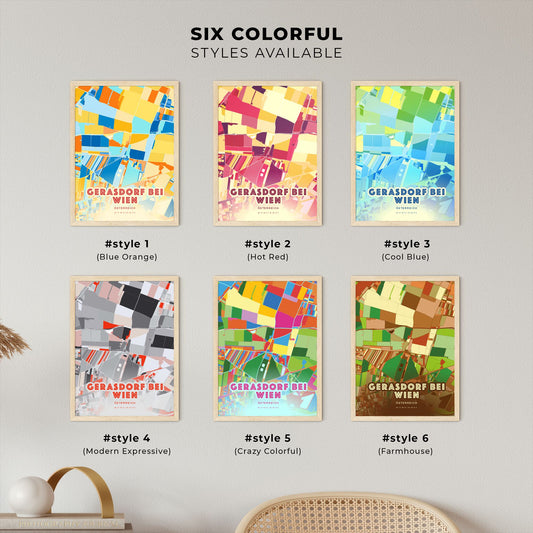 Colorful GERASDORF BEI WIEN AUSTRIA Fine Art Map Poster | Customizable