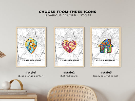 Wiener Neustadt Austria, minimal art map with a colorful icon