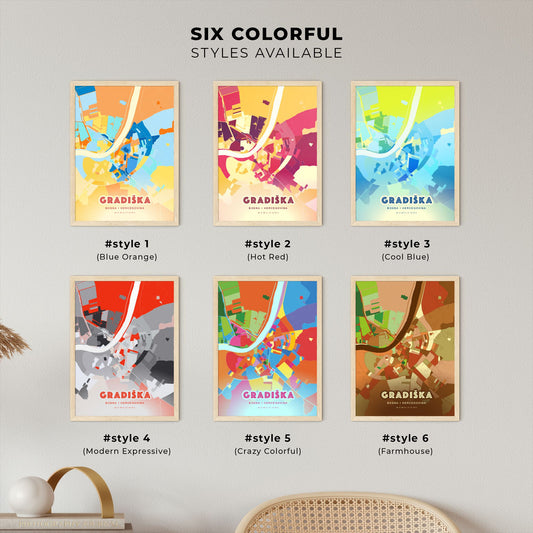 Colorful GRADIŠKA BOSNIA AND HERZEGOVINA Fine Art Map Poster | Customizable