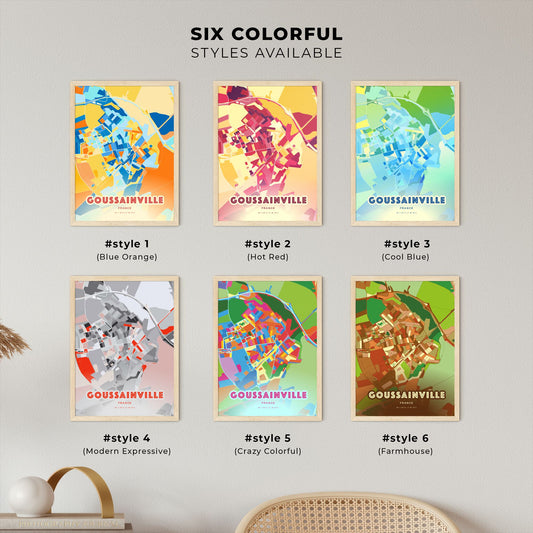 Colorful GOUSSAINVILLE FRANCE Fine Art Map Poster | Customizable