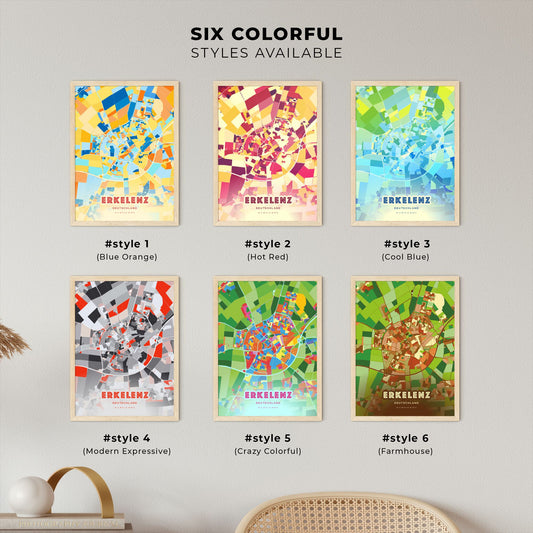 Colorful ERKELENZ GERMANY Fine Art Map Poster | Customizable