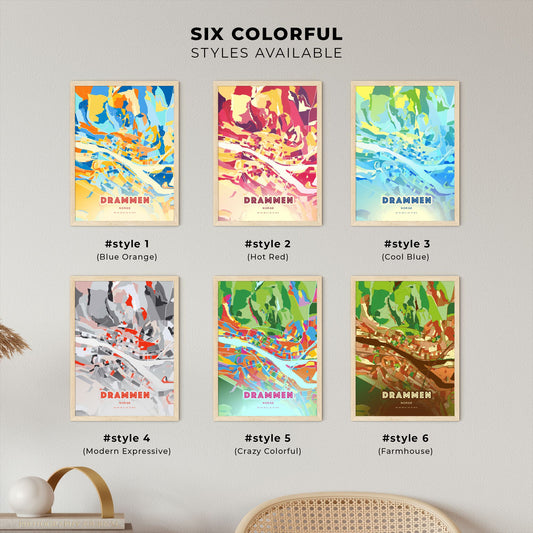 Colorful DRAMMEN NORWAY Fine Art Map Poster | Customizable