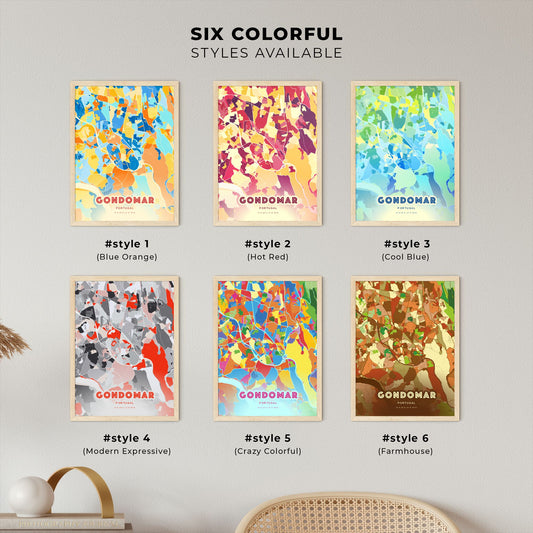 Colorful GONDOMAR PORTUGAL Fine Art Map Poster | Customizable