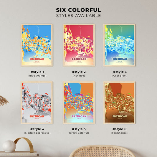 Colorful ERZINCAN TURKEY Fine Art Map Poster | Customizable