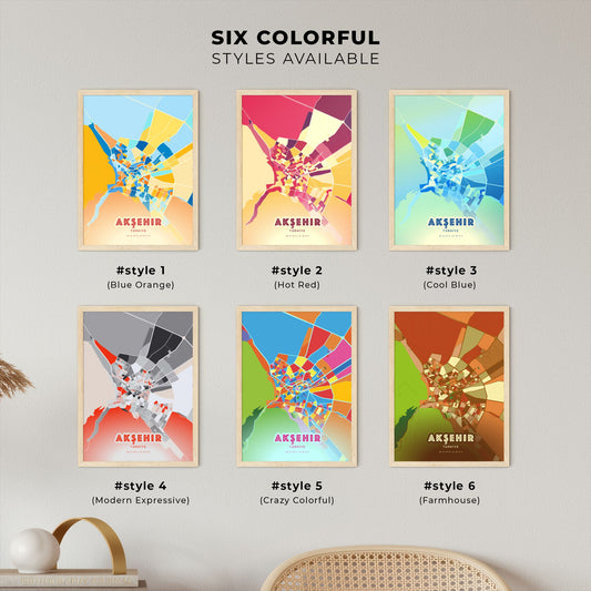 Colorful AKŞEHIR TURKEY Fine Art Map Poster | Customizable